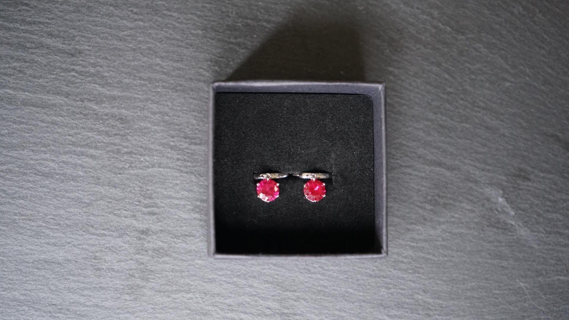 Diese eleganten Kreolen präsentieren einen intensiv leuchtenden Rubin in brillanter Facettierung. Eingefasst in eine feine Krappenfassung und befestigt an glänzenden Huggie-Creolen aus echtem 925er Silber, vereinen sie klassische Eleganz mit lebendiger Energie. Die beweglichen Steine funkeln in einem satten Pinkrot – auffällig, aber nicht überladen.